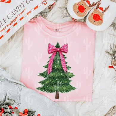 Christmas Tree Coquette Bow Faux Sequins TRANSFER CCD SEP
