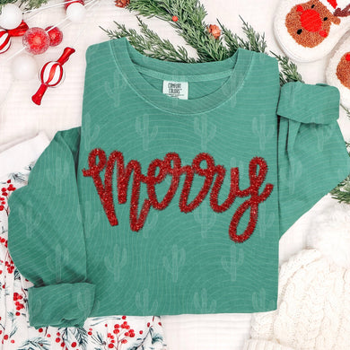 Be Merry Red Faux Sequin Embroidery TRANSFER CCD SEP