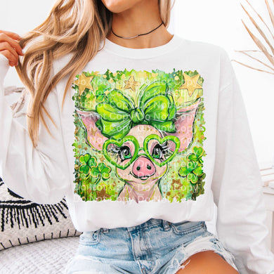 Green Heart Glasses Pig Green Bow TRANSFER ISP DEC 25