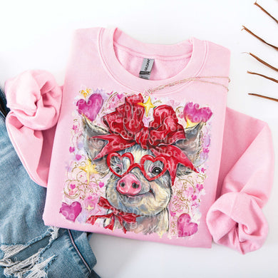 Red Heart Glasses Pig Red Bow TRANSFER ISP DEC 25