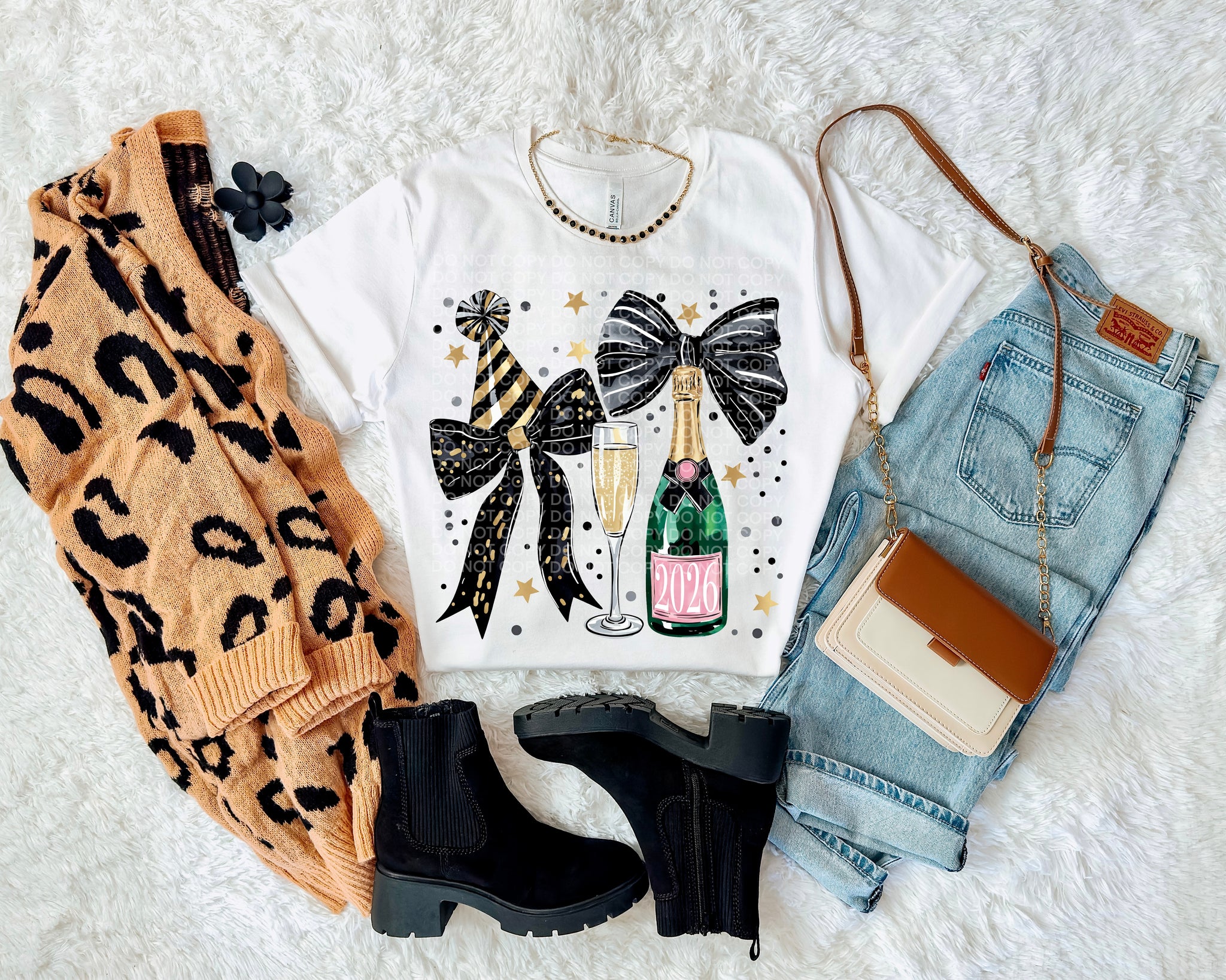 2026 Champagne Bottle Black And Gold Bow Collage TRANSFER SCG DEC 25