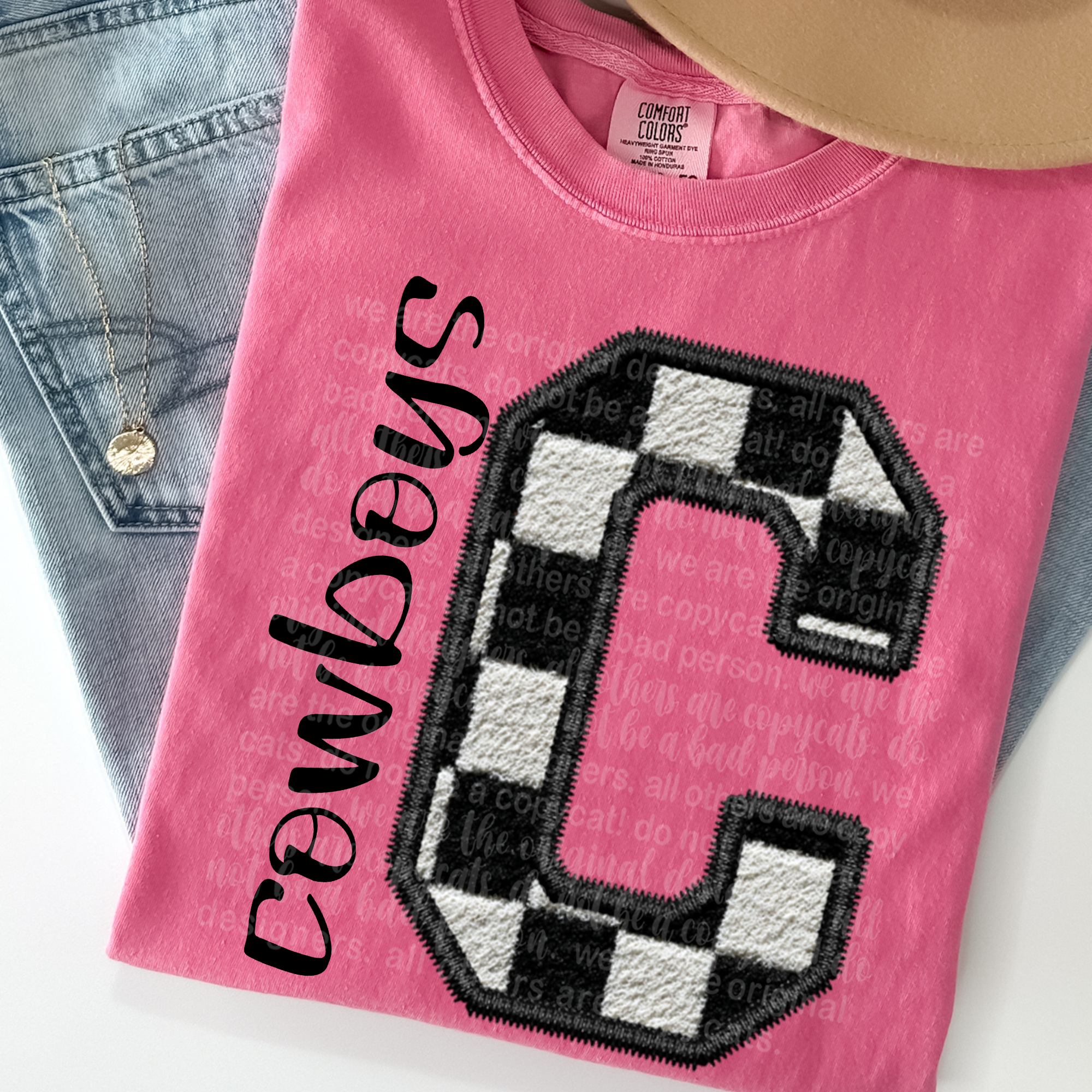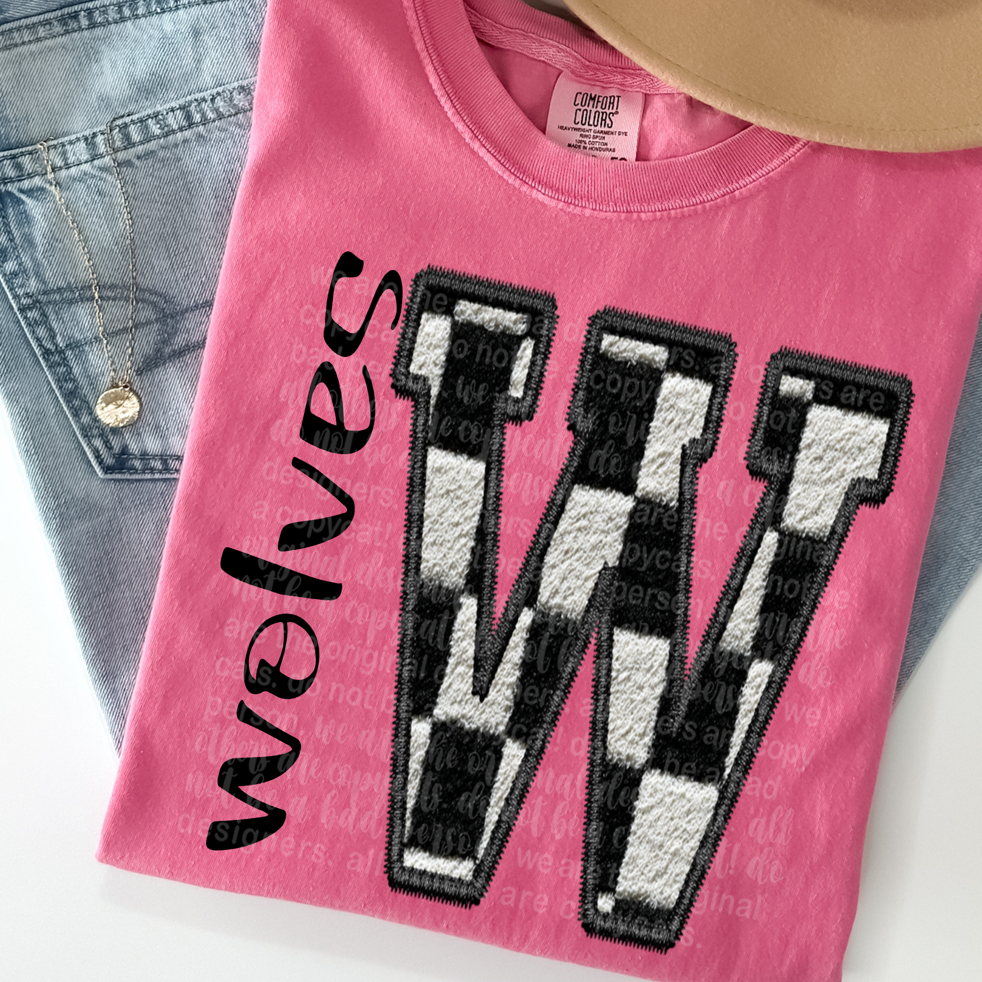 Direct to Film Transfer, or DTF, is a new technology that allows us to print your custom designs onto special film. These films are then transferred by you onto a garment of choice. These garments can be ANY color and ANY material. Similar to most heat transfer processes, a quality heat press is necessary for maximizing the best results. These DTF Transfers will be applied at 302 for 10-15 seconds and COLD PEELED. FOR THE SECOND PRESS-Cover transfer with teflon(for shiny finish) or parchment paper (for matte finish). The measurements for designs will not exceed the width.
