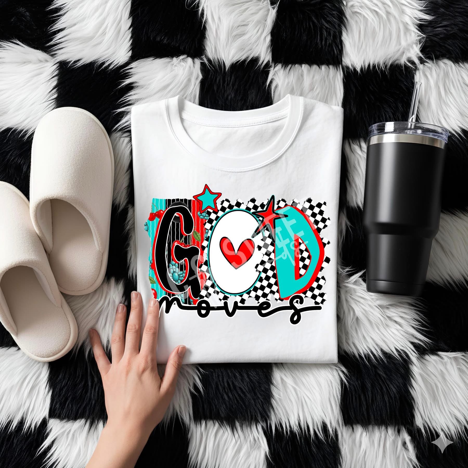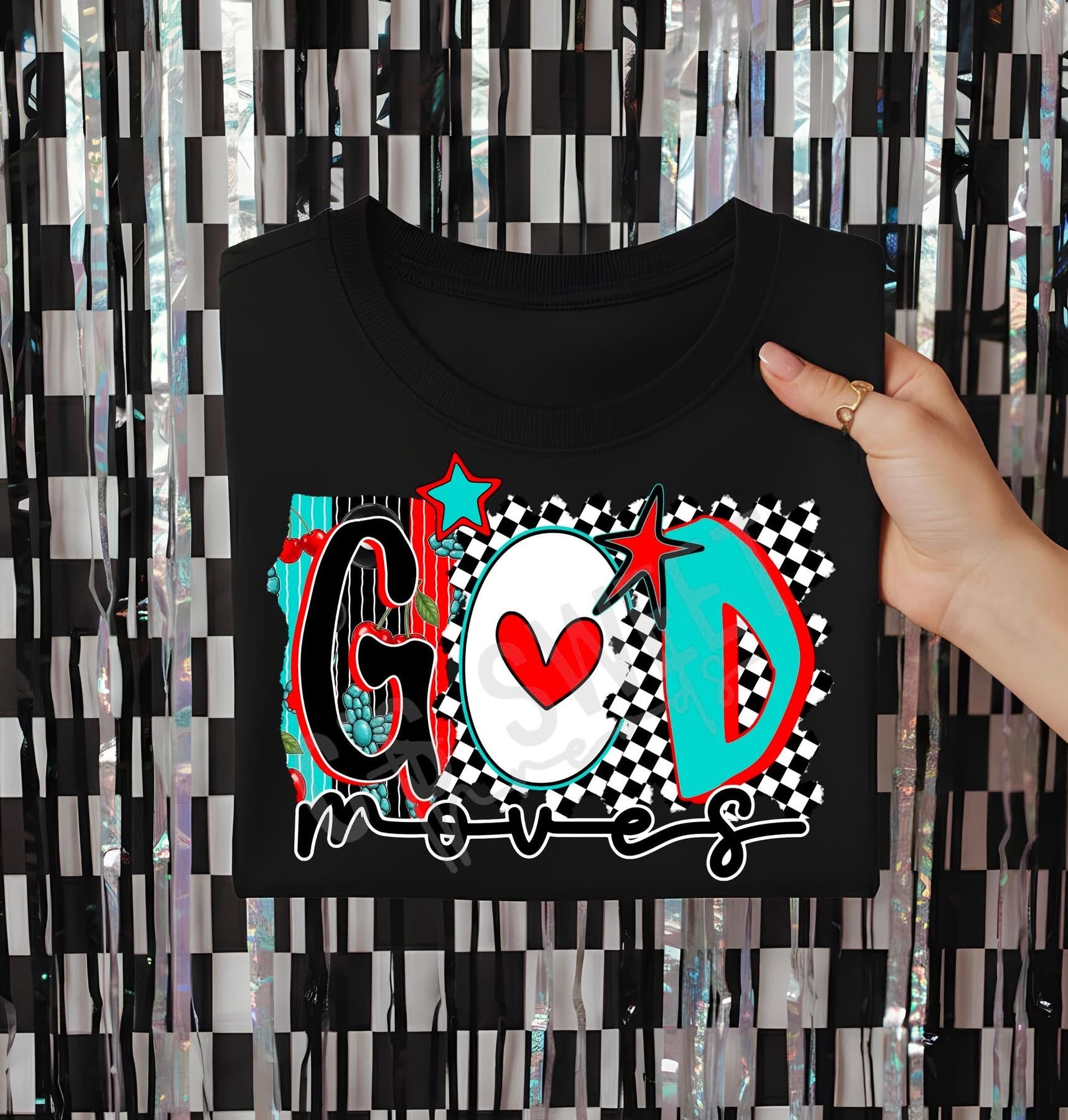 • Load image into Gallery viewer, God Moves Checker Background TRANSFER CST DEC 25