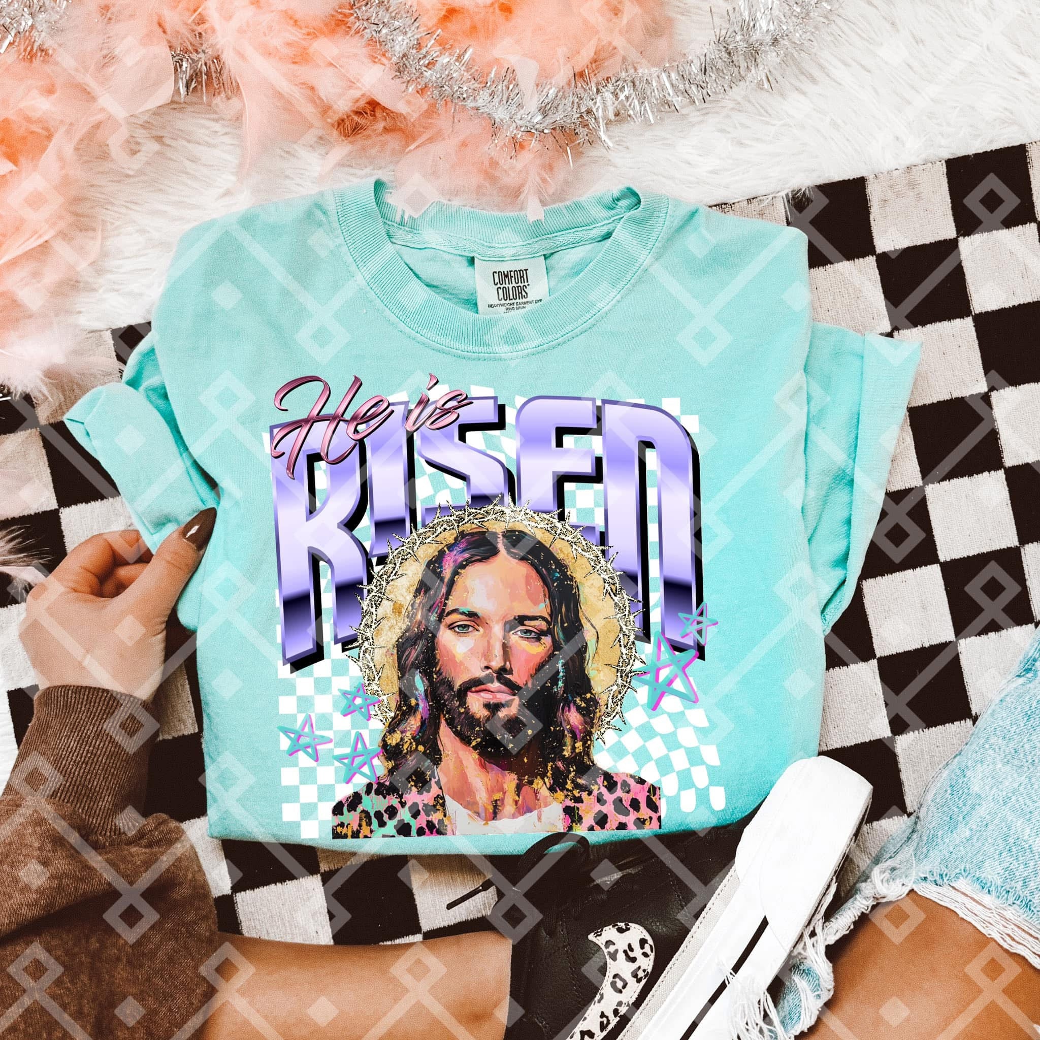 He Is Risen Checkered Background DROPDOWN TRANSFER CCD MAR