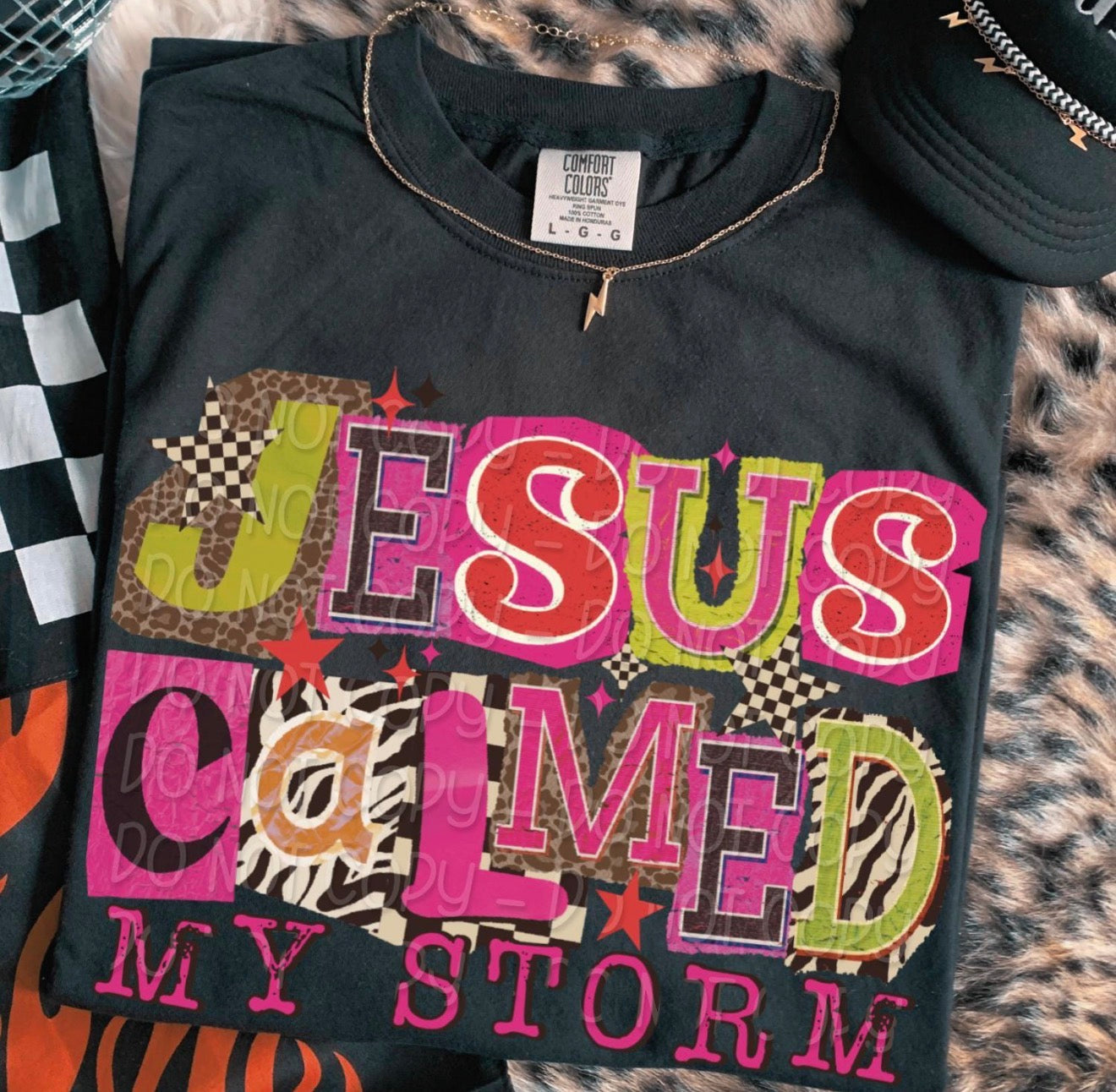 Jesus Calmed My Storm Leopard Checker Block Letters TRANSFER DWD NOV 25