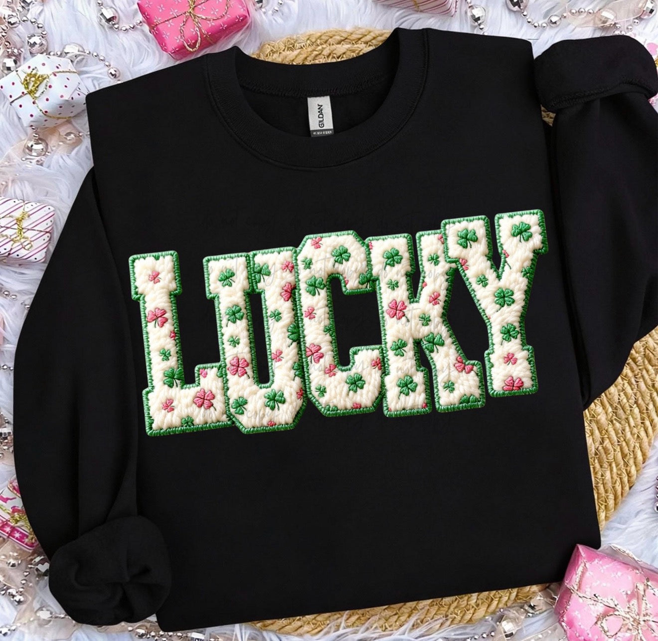 Lucky Pink Shamrock Faux Chenille TRANSFER ET JAN 26