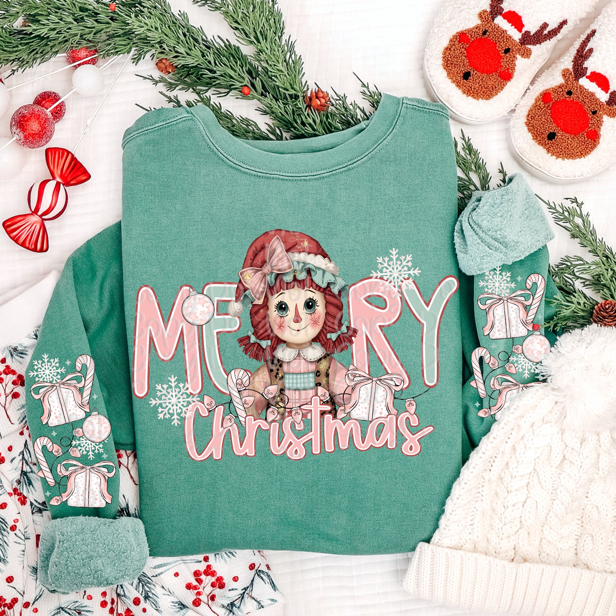 Merry Christmas Faux Yarn Doll Skin Tone Dropdown SLEEVE OPTION DROPDOWN TRANSFER VIRGO OCT 25