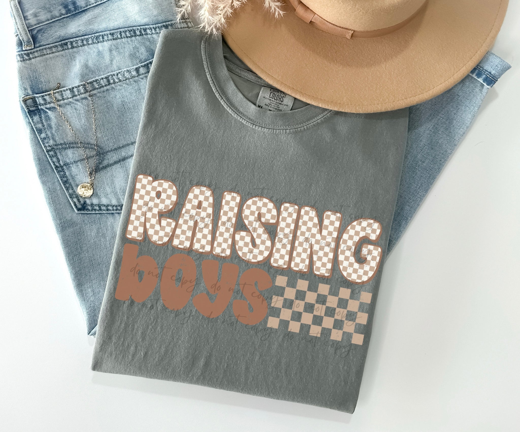 • Load image into Gallery viewer, Raising Boys Or Mama’s Boy Neutral Checker Dropdown TRANSFER SCAR NOV 25