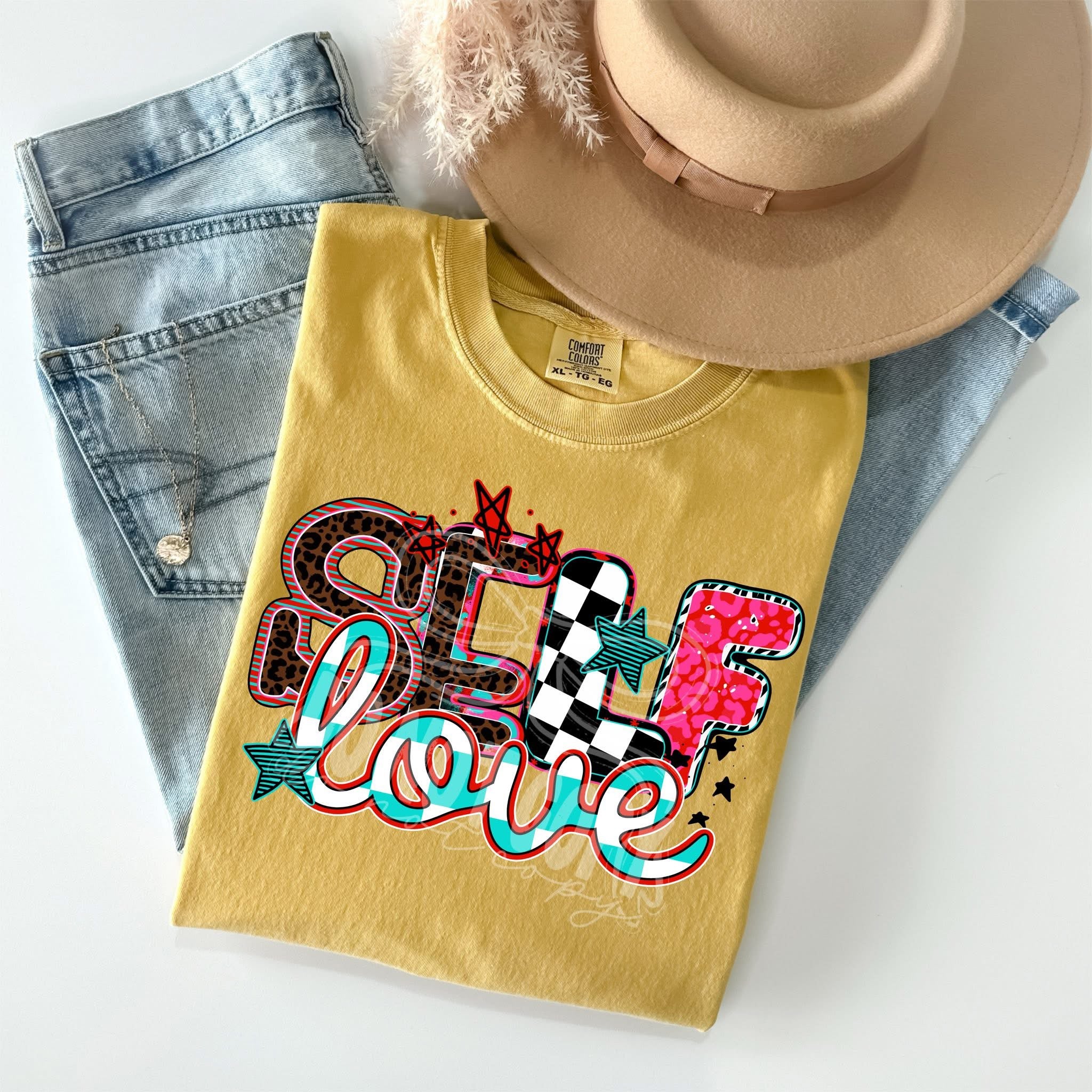 Self Love Teal Striped Stars TRANSFER CST MAR 26